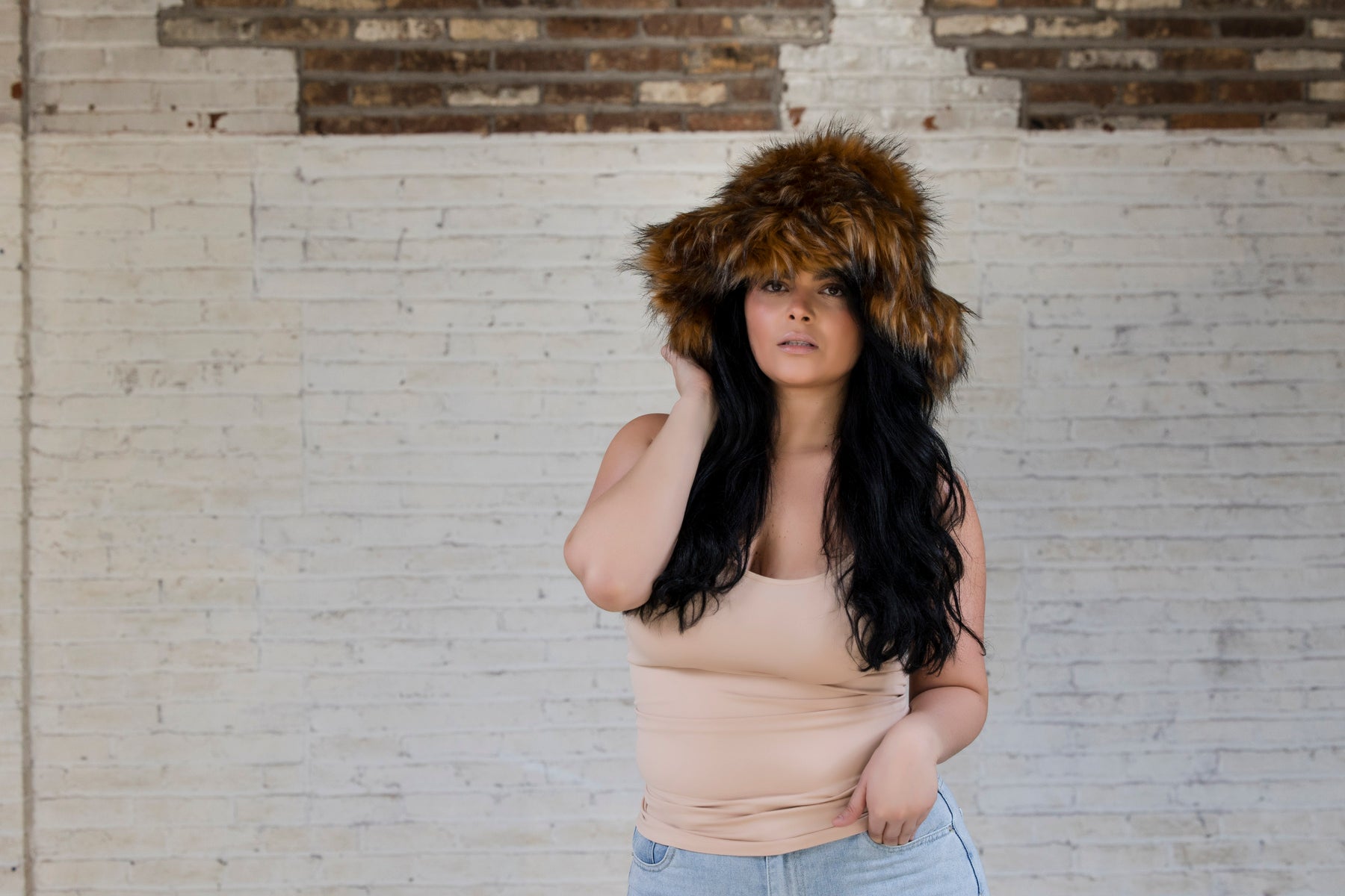 This luxurious fur bucket hat combines timeless style with practical versatility. Crafted from premium fur material, it delivers both warmth and sophistication for any season. The generously sized silhouette accommodates all head sizes without compromising comfort, making it an inclusive choice for diverse customers. The bucket design offers excellent coverage and protection while maintaining a fashion-forward aesthetic. Whether styled casually or dressed up, this hat transitions seamlessly across occasions. Its durable construction ensures lasting wear, while the soft fur provides a tactile luxury that elevates any outfit. A wardrobe essential for those seeking quality headwear that doesn't sacrifice style for function.