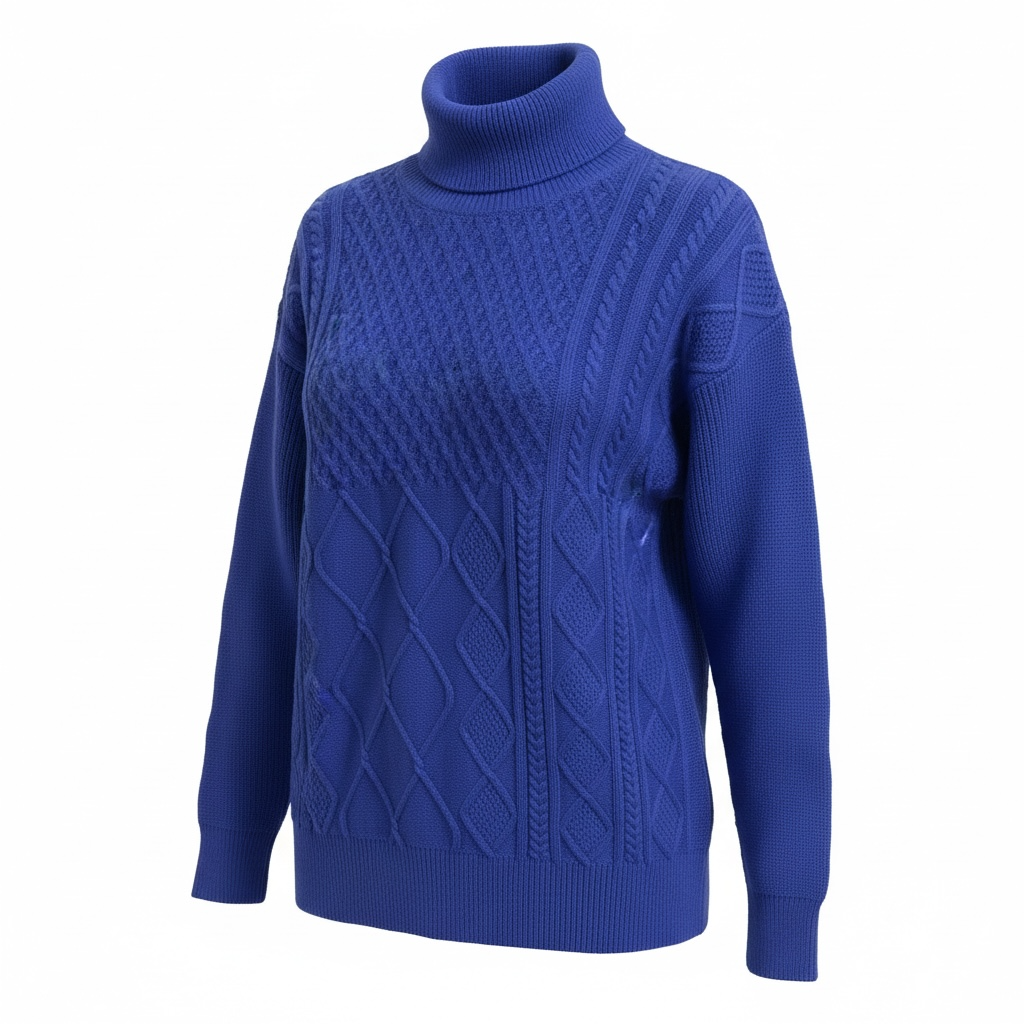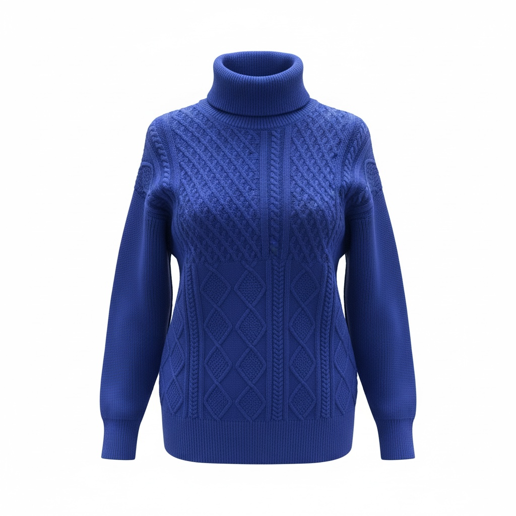 This stylish blue turtleneck sweater is both cozy and fun. Its turtleneck design adds extra warmth and its soft fabric makes it easy to wear on cold days.