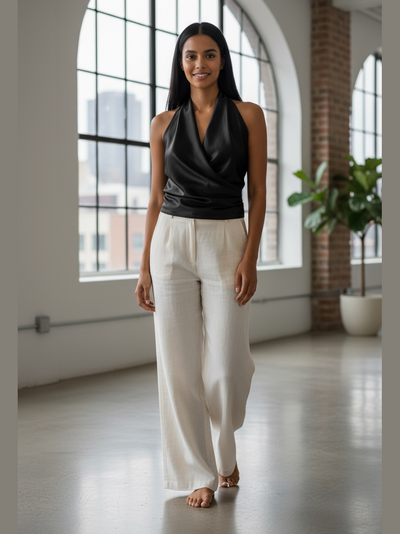 Camisa halter de satén negro